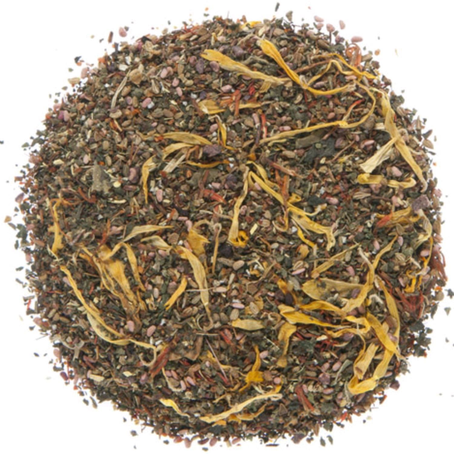 Rooibos, Nettle, Rosehip Raspberry, Licorice root pieces, Anise, Cardamom, Clove, Calendula petals, Safflower petals.